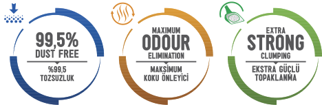 Thanks to its extraordinary liquid absorption capacity, it provides longer lasting use than other cat litters.