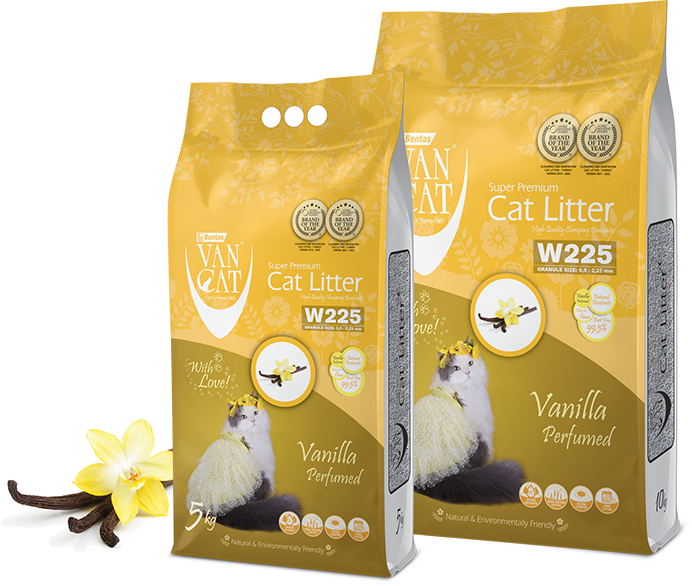 Clumping cat litter with high liquid absorption capacity. The fragrance molecules in the scented grains are activated when they come into contact with the liquid and provide a pleasant vanilla scent.